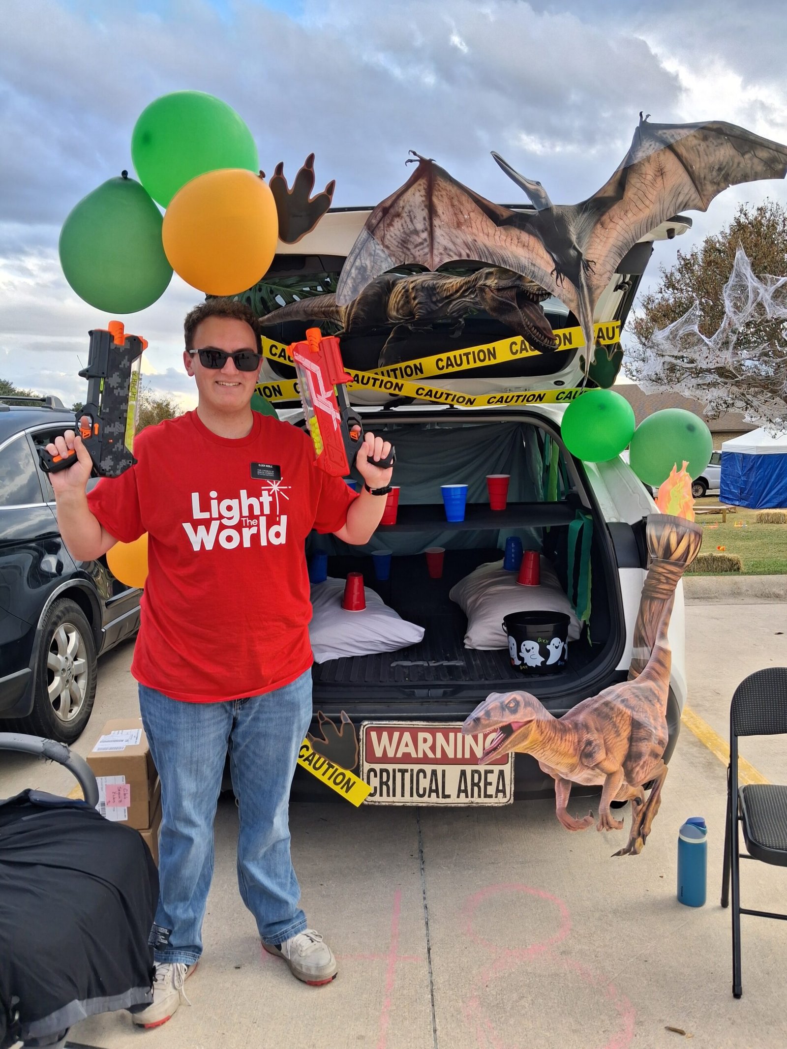 On Saturday we also had a massive trunk or treat! Me and my companion ran a Jurassic Park themed car with a cup shooting game and kids really loved it! Half of the town pretty much showed up and we got to see lots of friends we've been meeting with and teaching. I got to play some games myself and my favorite was where you used a slingshot to fire water balloons at a picture of Bishop Birds face!!