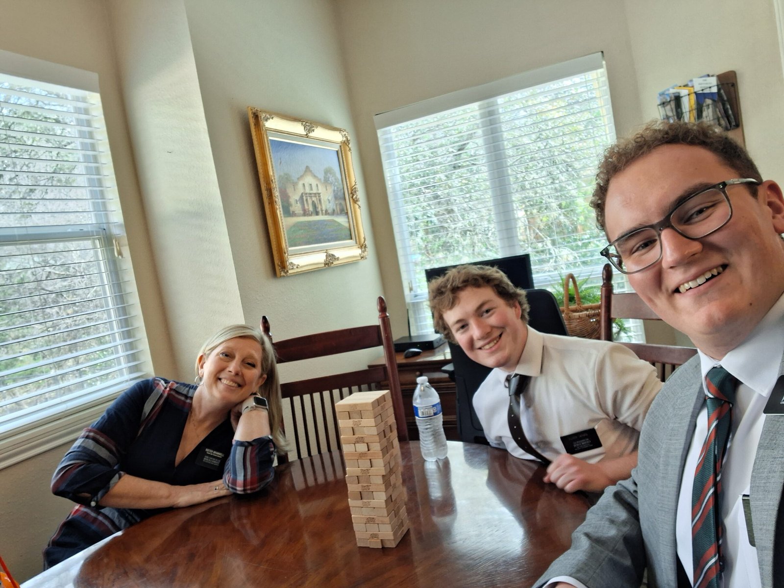 Another miracle is just the fun that was had this week! We got to go to the temple as a district on wednesday and the peace of the Lord was very much needed. I also got to go on a very fun exchange with the one and only Elder Henrie. He is so funny and chill with people and I loved how much he just wants to be people's friend. Instead of asking “can we say a prayer” as the first contact, he would ask “bro what's your favorite thing to order at chick fil a?” 🤣 So funny and we we're dying laughing together all day. Also I got fed every single day this week by such wonderful members and I am so grateful to be serving the wonderful people here. One last thing was we got to go do interviews with President Bramwell at his house and after I did mine, Elder Henrie and I played Jenga with Sister Bramwell for like an hour!! So much fun!!Â